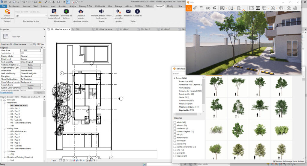 Explora la biblioteca de activos de Enscape en detalle, aprendiendo a utilizar diferentes tipos de elementos 3D (personas, vehículos, mobiliario, vegetación, etc.) para poblar tus escenas y enriquecer tus renders y animaciones.