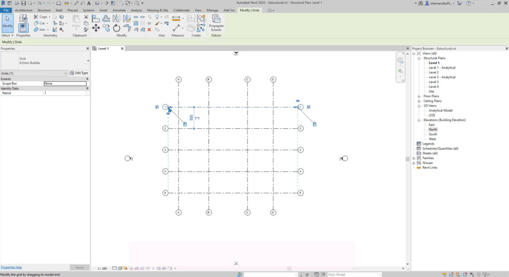 Domina la creación y edición de rejillas para organizar y alinear elementos estructurales en el modelo.