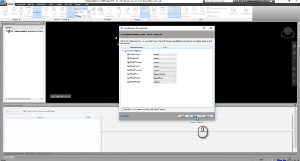 Aprende a comenzar un proyecto de cuantificación en Navisworks Manage, explorando las herramientas y técnicas para medir y estimar cantidades en modelos BIM.