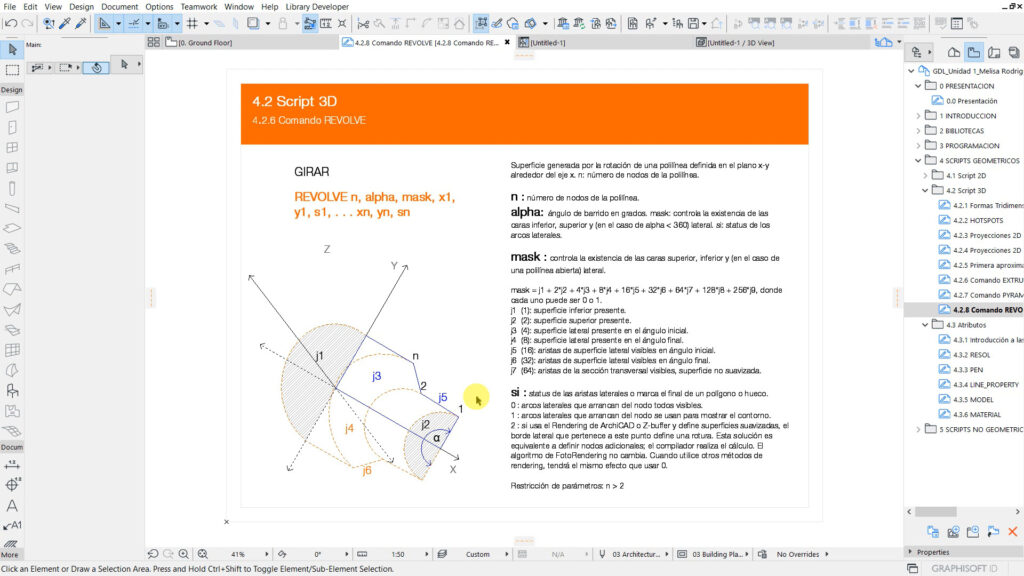 Explora el uso del comando REVOLVE en scripts GDL para generar objetos tridimensionales mediante la rotación de perfiles en Archicad, facilitando la creación de elementos curvos y detallados.