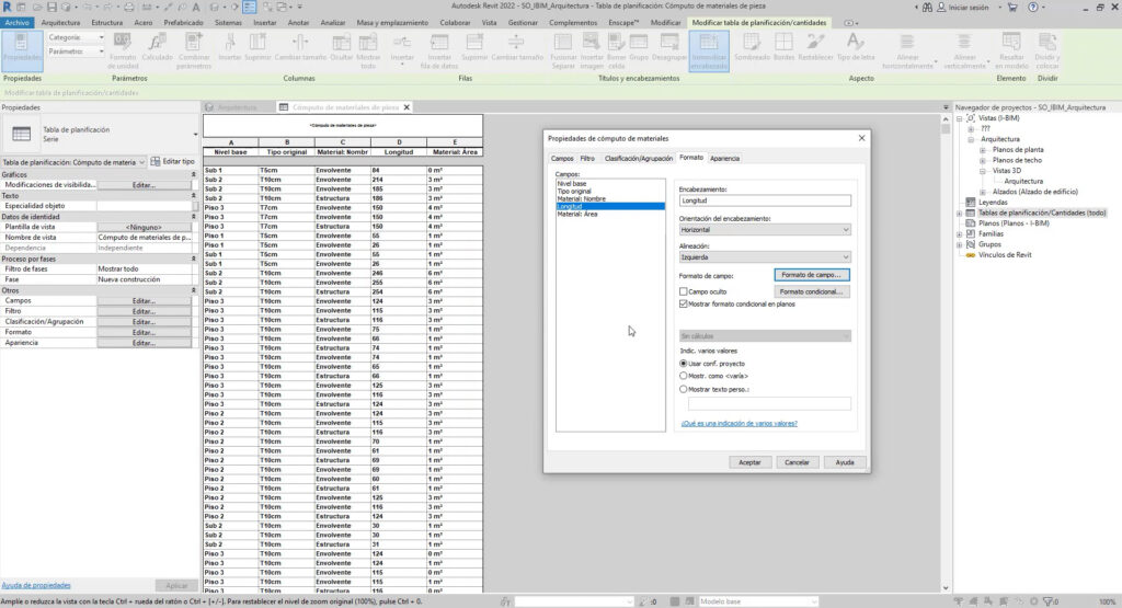 Aprende a crear y utilizar tablas en Revit para organizar y presentar información relevante sobre la estructura y la envolvente del proyecto, incluyendo materiales, dimensiones, cantidades y otros datos necesarios para la planificación de la obra.